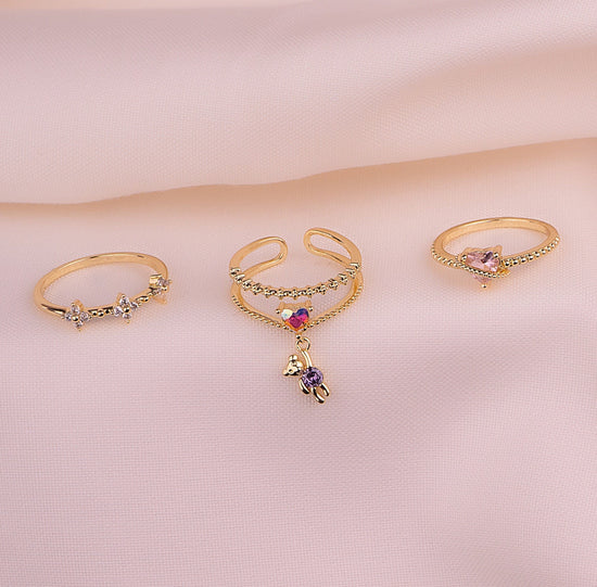 Set X 3 Anillos Osito Colgante Ref: J350