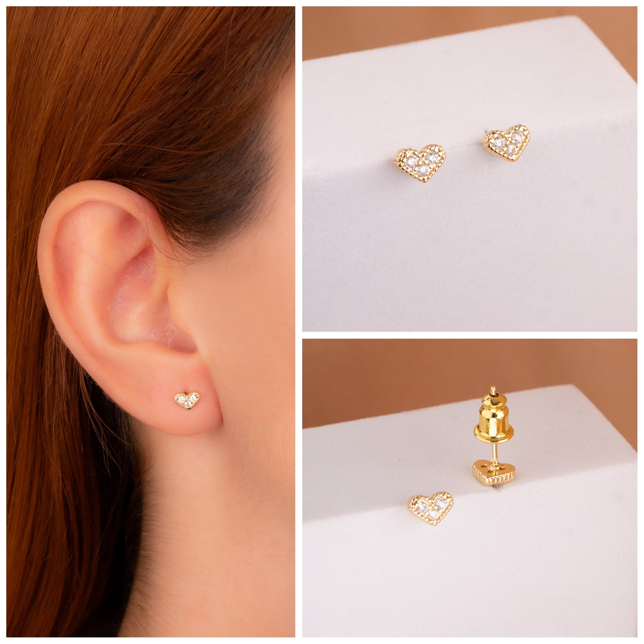 Topitos Corazones Circones Dorados Ref:L1254